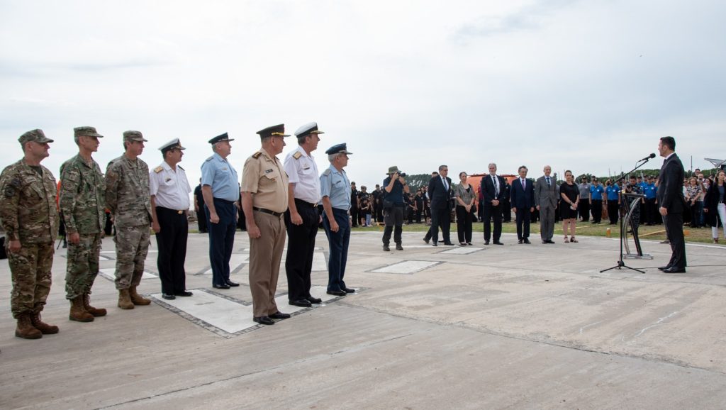 El acto fue presidido por el Ministro de Defensa, Luis Petri, acompañado por los Jefes de Estado Mayor Conjunto de las Fuerzas Armadas, Teniente General Juan Martín Paleo; de la Armada Argentina, Almirante Julio Horacio Guardia; de la Fuerza Aérea Argentina, Brigadier General Xavier Julián Isaac y del Ejército Argentino, Teniente General Guillermo Olegario Pereda. Asimismo, participaron personal del Comando Conjunto Antártico; de la Dirección Nacional del Antártico (DNA); invitados especiales; y familiares de los tripulantes.